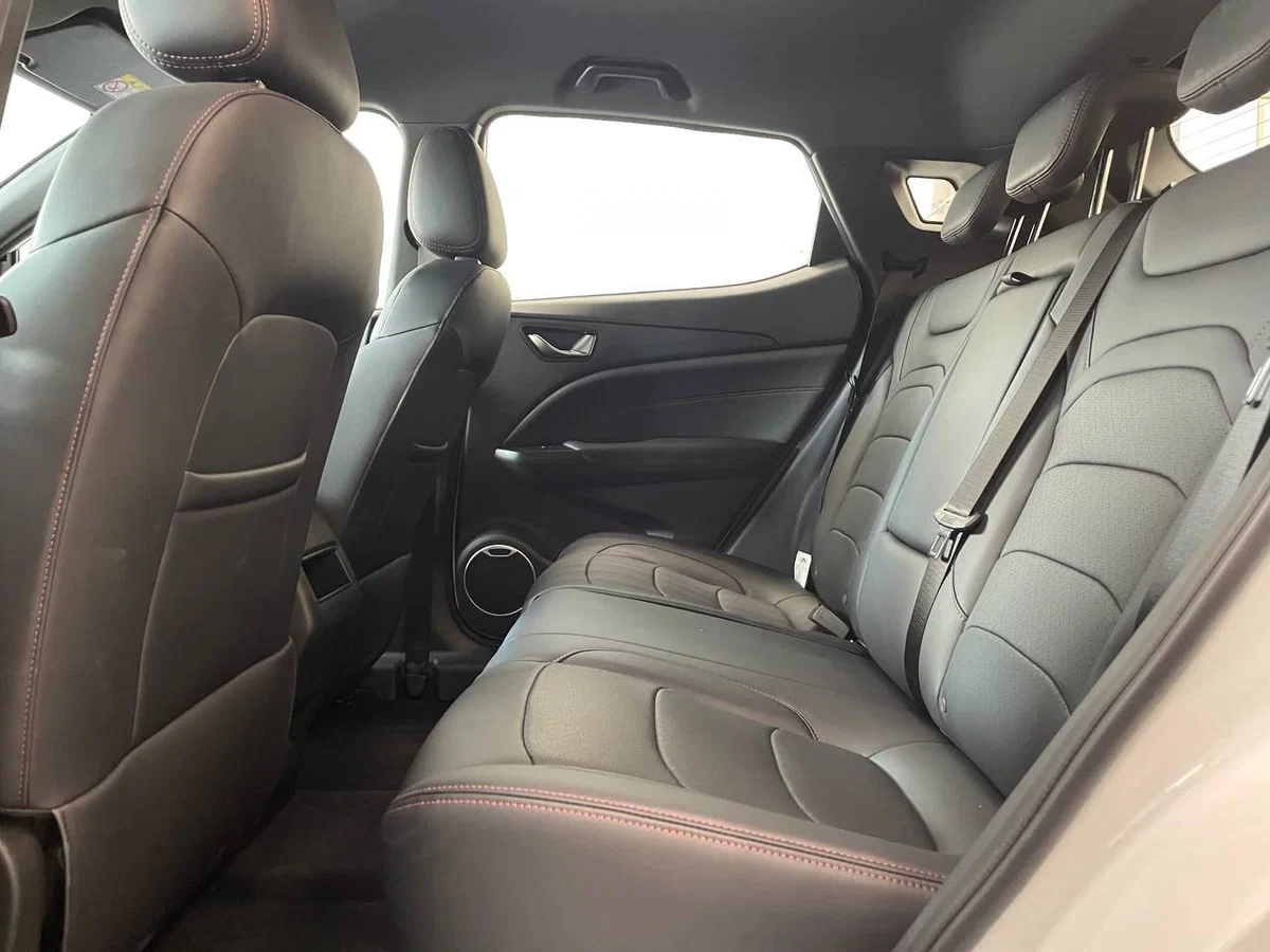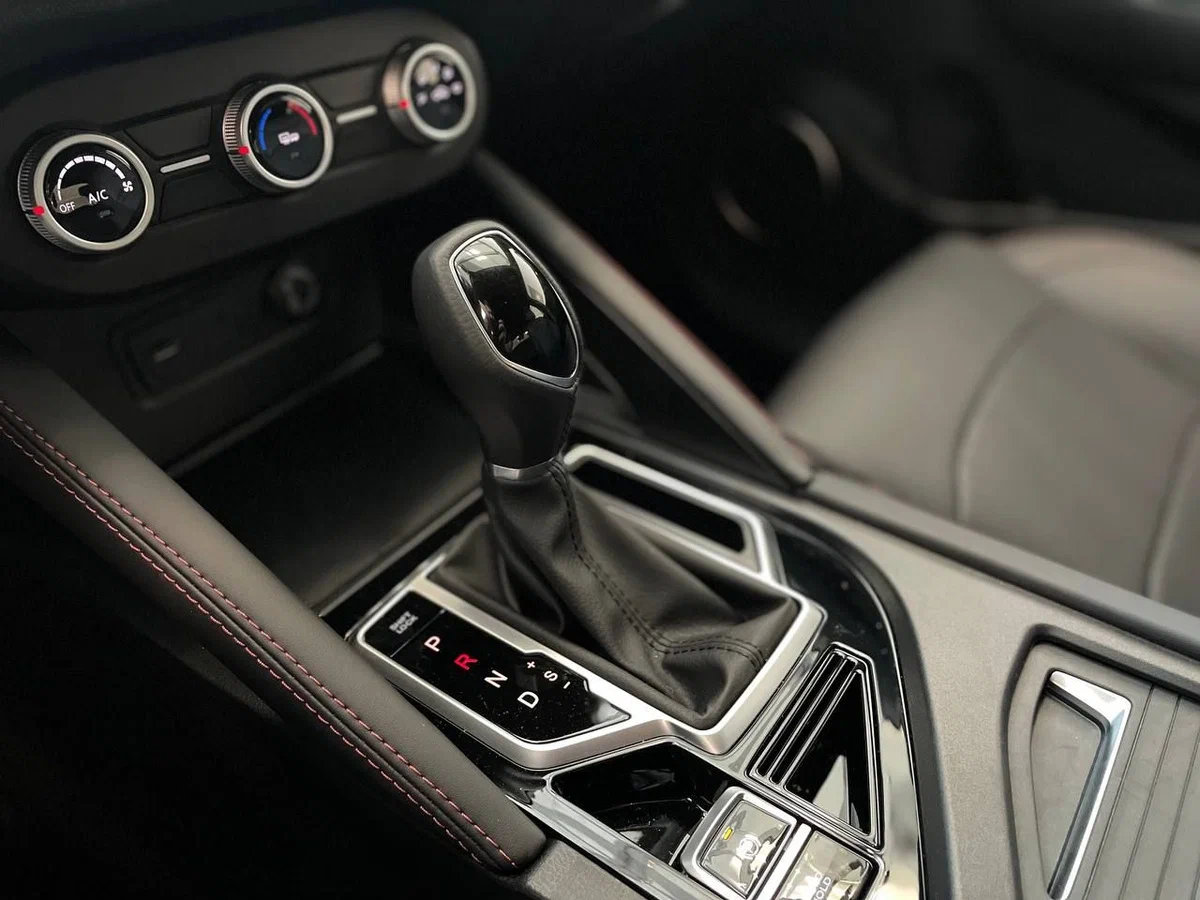 - Отделка сидений экокожей черного цвета с красной прострочкой