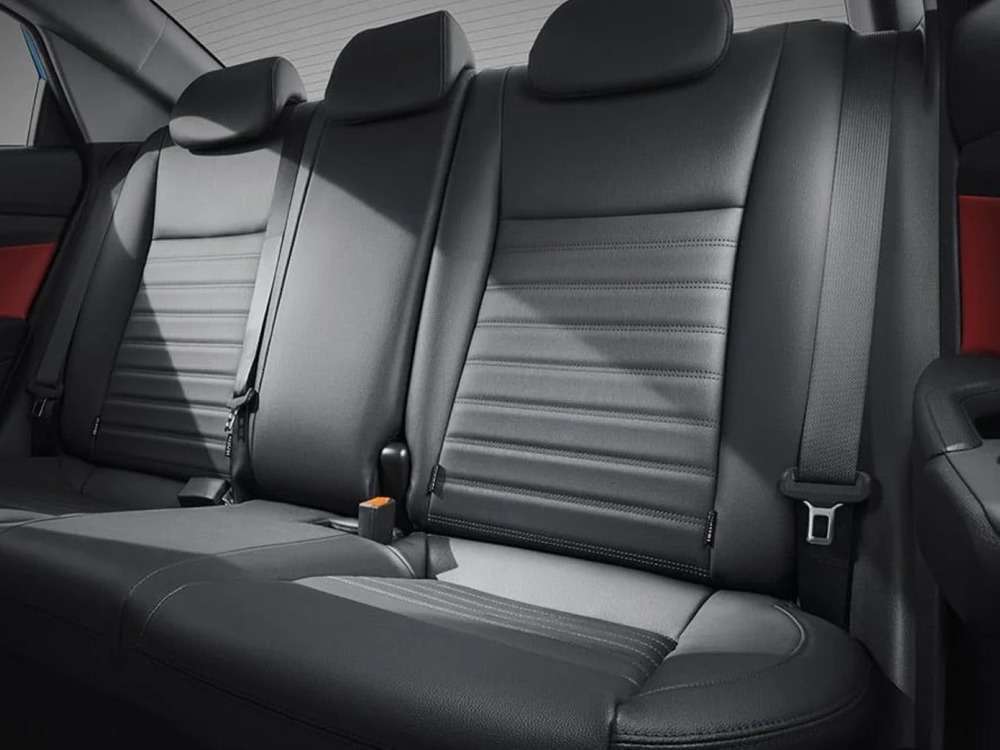 - Комбинация кожа / ткань в отделке сидений с красной прострочкой